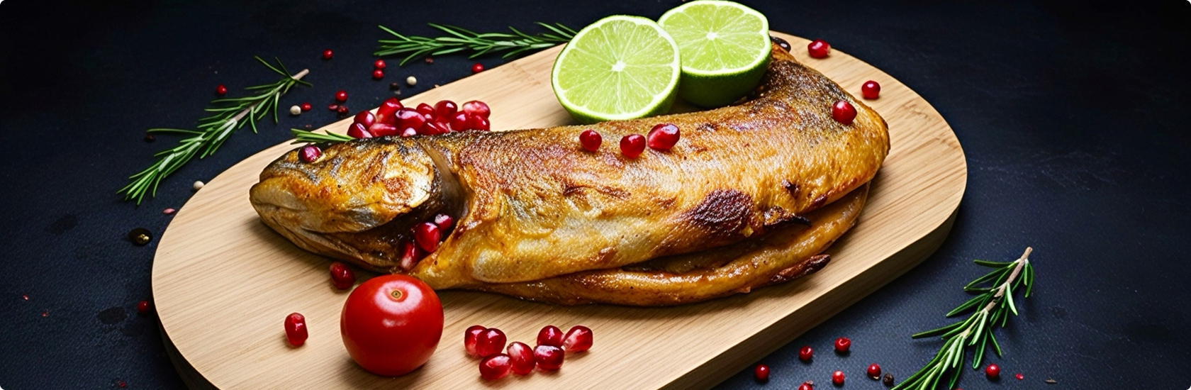 Маринад для рыбы должен быть деликатным. Достаточно оливкового масла, соли, чёрного перца и свежего розмарина. Хорошо заходят лимонные дольки прямо в брюшко и тонкие ломтики чеснока под жабры. Время маринования — не больше 30 минут, иначе рыба начнёт терять структуру.